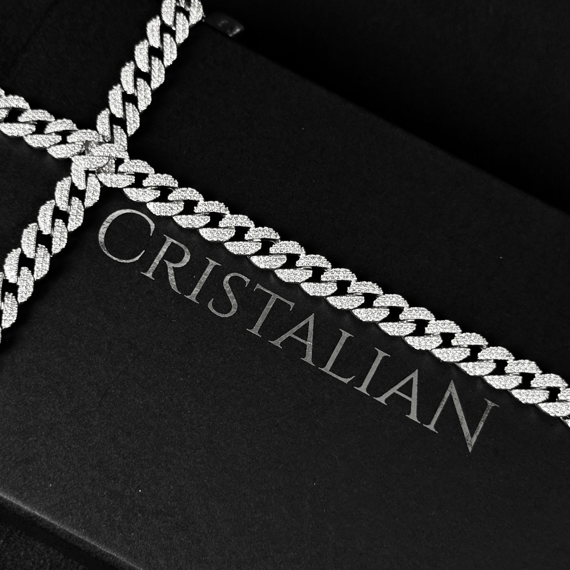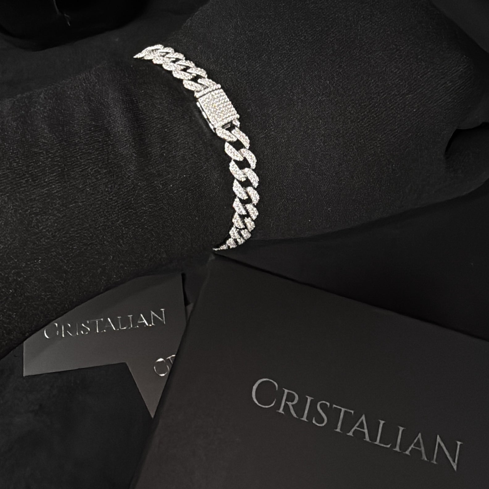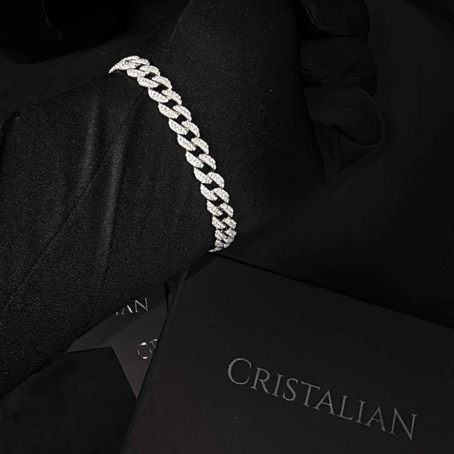 Pulseira Cravejada "YACHT" Elo Cubano 9mm - Prata 925 - Brilhantes Flawless (VVS+)